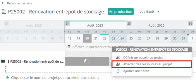 Il faudra ensuite cliquer sur "Affecter des ressources au projet".