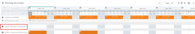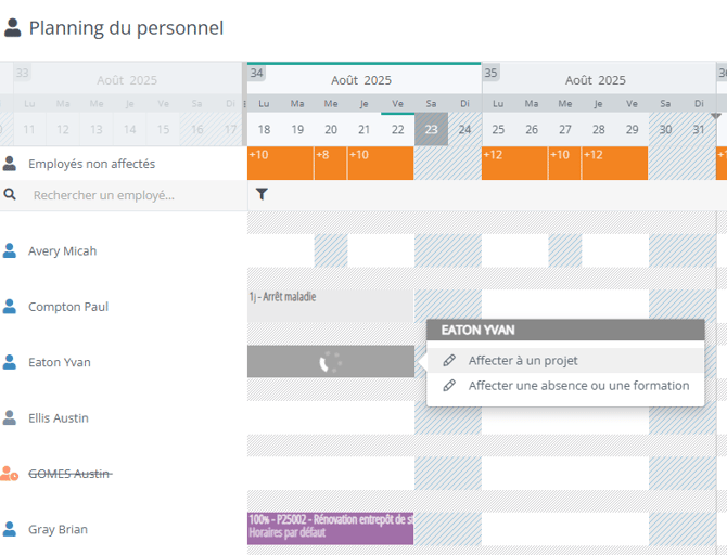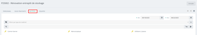 Le fonctionnement est le même pour affecter un projet dans le planning des ressources (personnel, sous-traitants, matériel) que dans le planning des projets.
