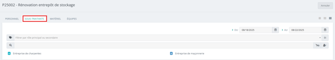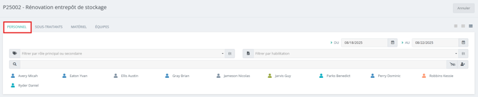 Vous pouvez affecter des ressources de type personnel (employés / intérimaires), sous-traitants, matériels ou des équipes :