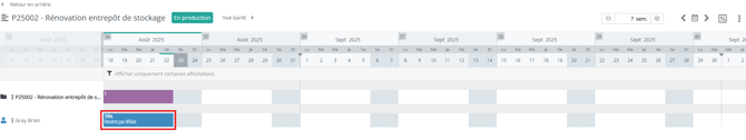 Pour saisir une nouvelle affectation des ressources, il faudra sélectionner la période concernée par votre nouvelle affectation sur la ligne du projet en maintenant le clic gauche :