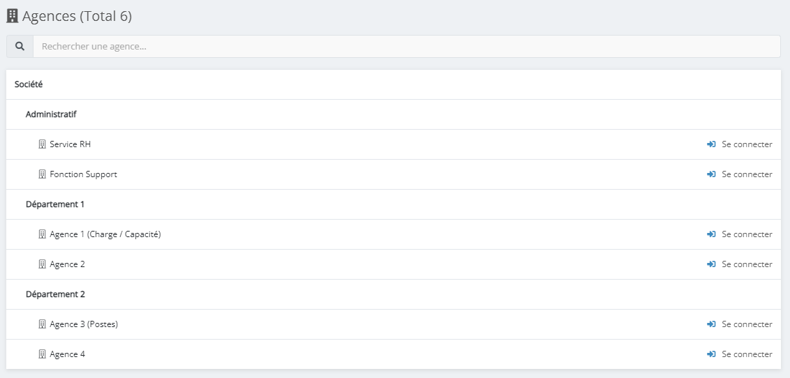 Les agences permettent de personnaliser votre organisation lorsque vous utilisez Staff Planning en mode multi-agence.