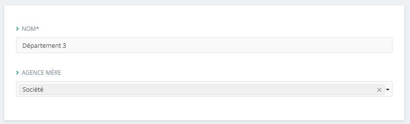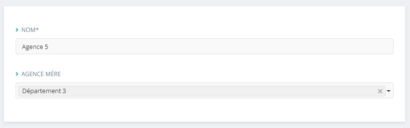 Pour créer un nouveau groupe d'agence, vous devez d'abord créer une agence puis la sélectionner en tant qu'agence mère :