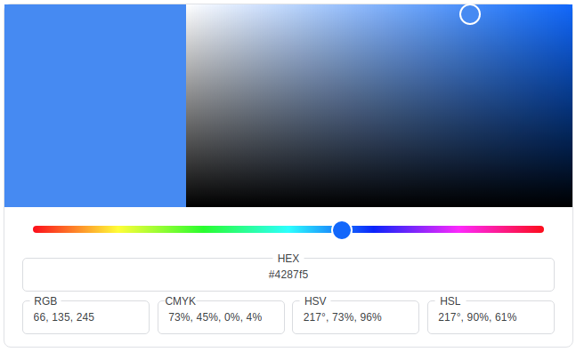 Il vous suffira alors de copier la valeur située sous HEX (#4287f5 dans l'exemple ci-dessous) puis de la coller dans le champs couleur de Staff Planning :