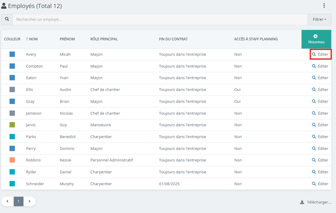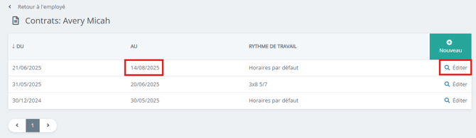 Lorsqu'un employé ou un intérimaire n'est plus en contrat avec votre société, il faut d'abord modifier sa partie contractuelle en lui mettant une date de fin :
