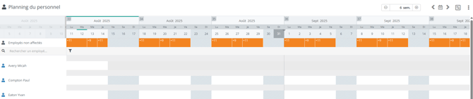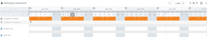 Un employé ou un intérimaire archivé ne sera plus visible dans les plannings ou pointages en dehors de sa partie contractuelle :