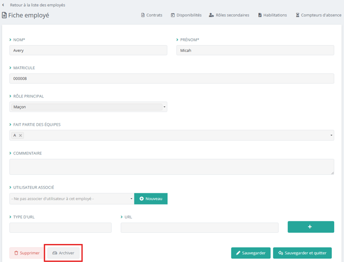 Attention, il est conseillé d’archiver la fiche de employé / intérimaire et de ne surtout pas la supprimer.