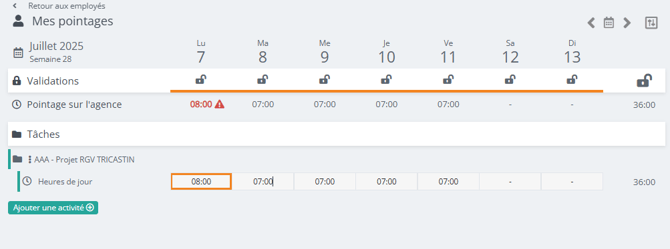 3 - Visualisez le détail de vos pointages préremplis par activité.