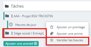 puis cliquez sur «ajouter un projet» (si vous y avez accès), sélectionnez votre 2ème projet et ajoutez 1h en ventilant les heures