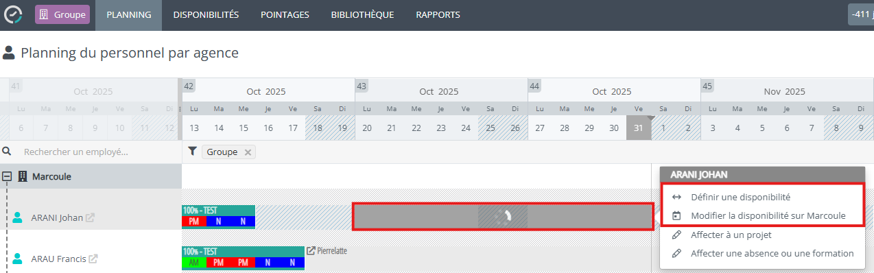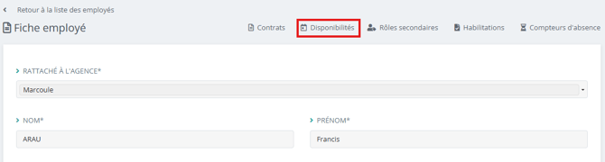 Si vous avez accès aux deux agences (agence d'origine et agence de prêt), vous pouvez modifier la disponibilité de votre employé / intérimaire depuis la bibliothèque.