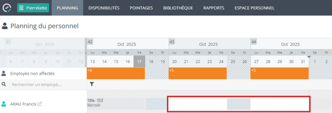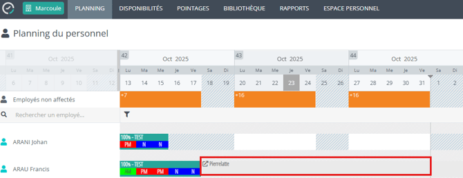 Dans notre exemple, l'agence de prêt (Pierrelatte) pourra planifier l'employé / intérimaire pendant sa période de prêt :