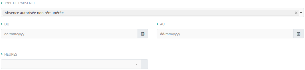 En fonction du type d'absence le formulaire de demande peut être différent :