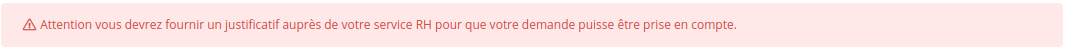 Si la demande nécessite un justificatif un message vous indique de le fournir à votre service RH.