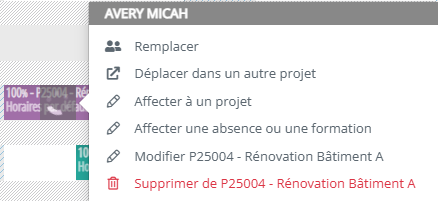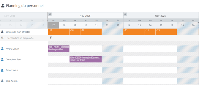 M AVERY n'est plus affecté au projet "P25004 - Rénovation Bâtiment A" du 17/11 au 21/11, il est désormais affecté sur le projet du 24/11 au 28/11 :