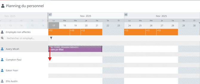 Par exemple, on peut décaler la semaine de M AVERY du 17/11 au 21/11 à M COMPTON sur une autre semaine comme celle du 24/11 au 28/11 :
