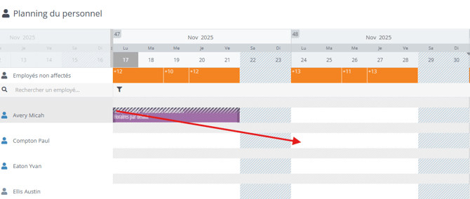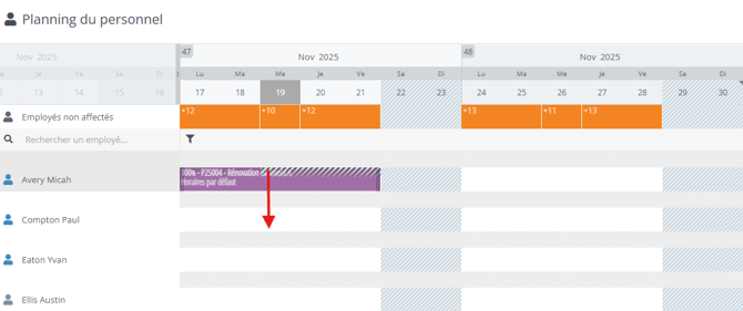 Nota : Il est possible de déplacer une affectation d'un employé à un autre sur une autre semaine.