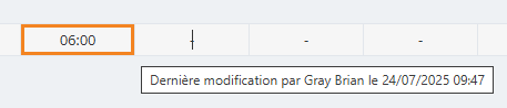 Si vous laissez la souris sur une case colorée, une pop-up affichera la personne qui a effectuée les dernières modifications par rapport au pré-pointage :