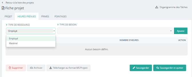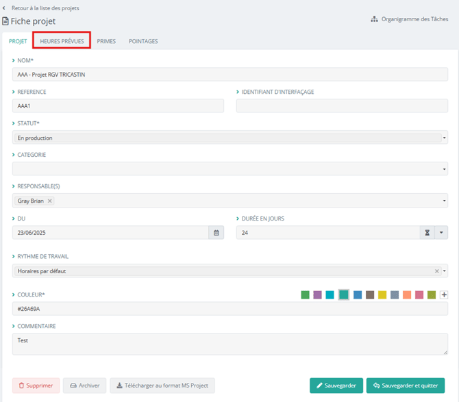 Un onglet « heures prévues » est désormais disponible dans la fiche projet :
