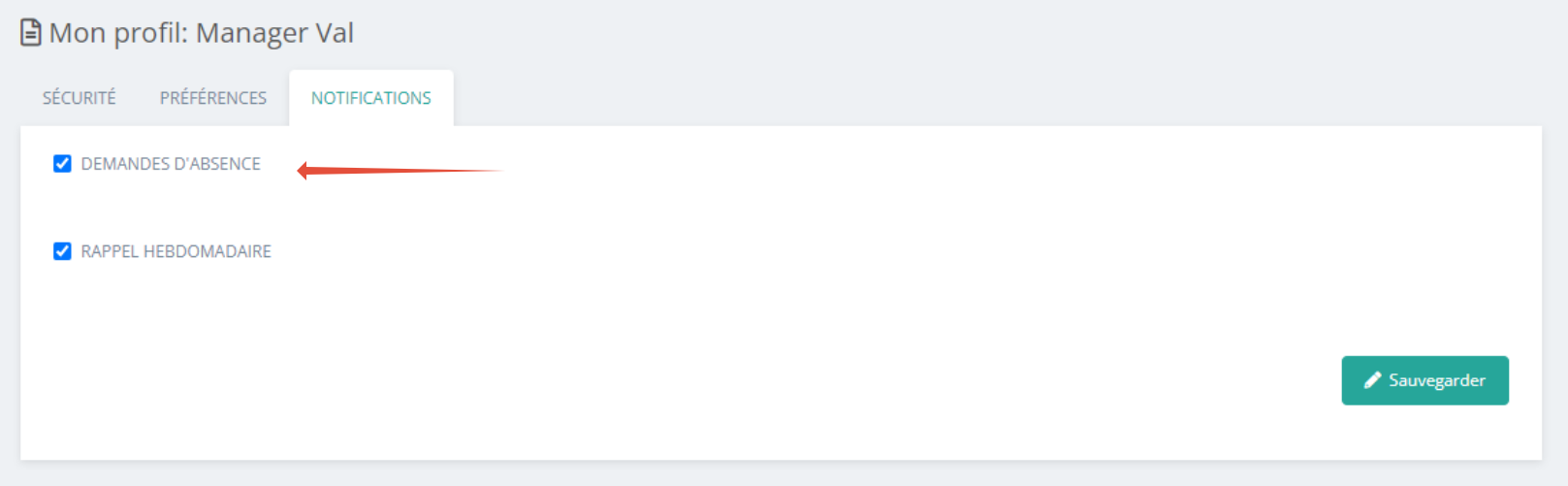 vérifier les préférences utilisateur du responsable d'équipe (Mon profil > Notifications, option "Demandes d'absence").