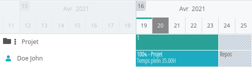 Exemple d'un salarié planifié à 100% sur un projet :