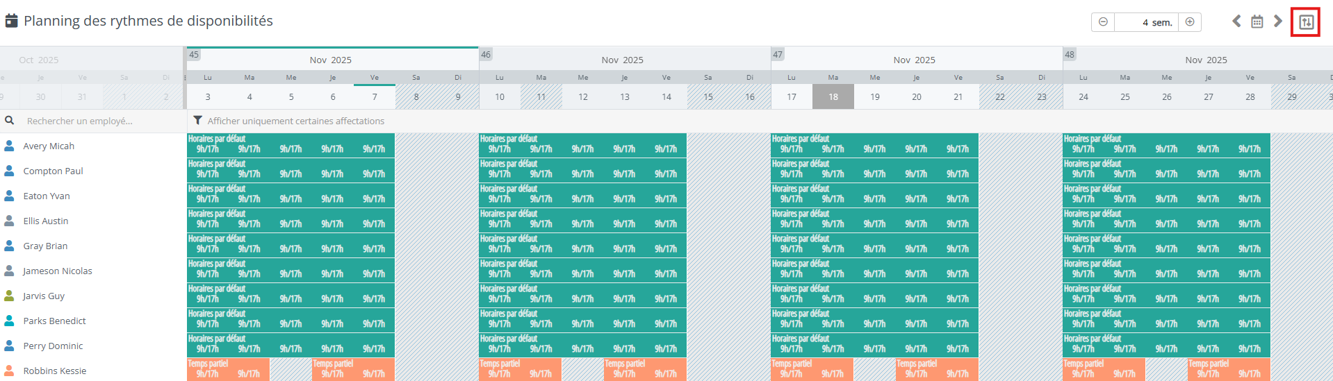 Dans le planning des rythmes de disponibilités, vous avez la possibilité de modifier l'affichage via les préférences