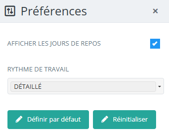 Si vous souhaitez avoir des préférences par défaut à chaque ouverture du planning, vous pouvez cocher vos préférences et cliquer sur "définir par défaut".