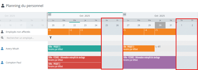 Dans votre planning du personnel, il est possible de détailler ou masquer le rythme de travail.