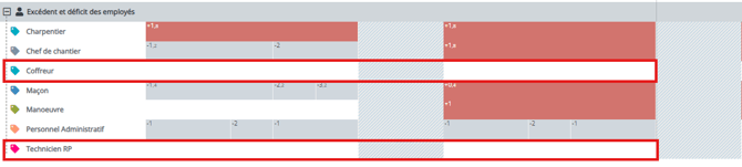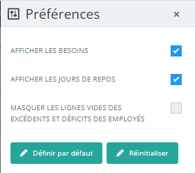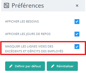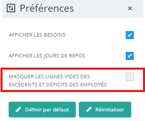Si la préférence est décochée, vous aurez tous les rôles qui s'affichent dans les excédents et déficits des employés même les lignes vides :