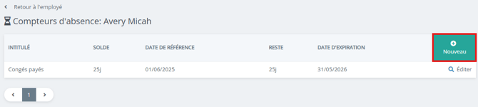Pour associer un nouveau compteur à l'employé / intérimaire, il faudra cliquer sur "Nouveau" :