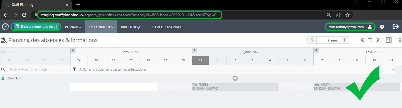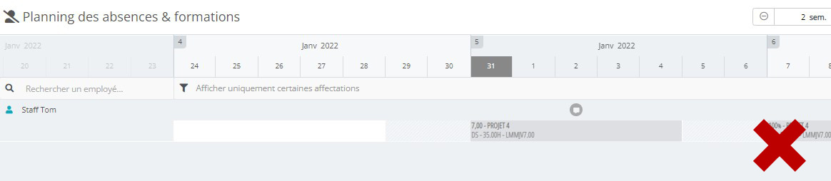 - Lister l'ensemble des actions et des informations (projets, salariés, affectations, etc.) permettant de reproduire l'anomalie