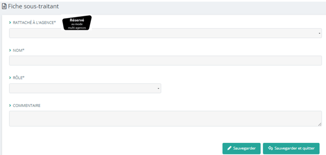 Pour créer un nouveau sous-traitant, cliquez sur Nouveau puis renseignez le maximum d'informations.