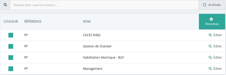 Vous pouvez utilisez des couleurs personnalisées pour vos types de formation.