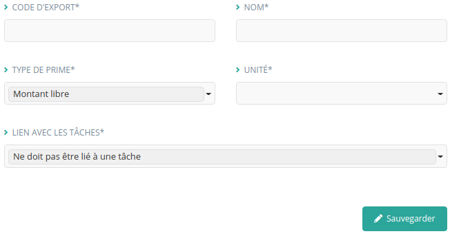 Unité : Sans unité, Monétaire ou Kilomètre. Utilisé uniquement cas de type Montant libre. Sert à exprimer l'unité de la prime dans l'export vers votre logiciel de Paie.